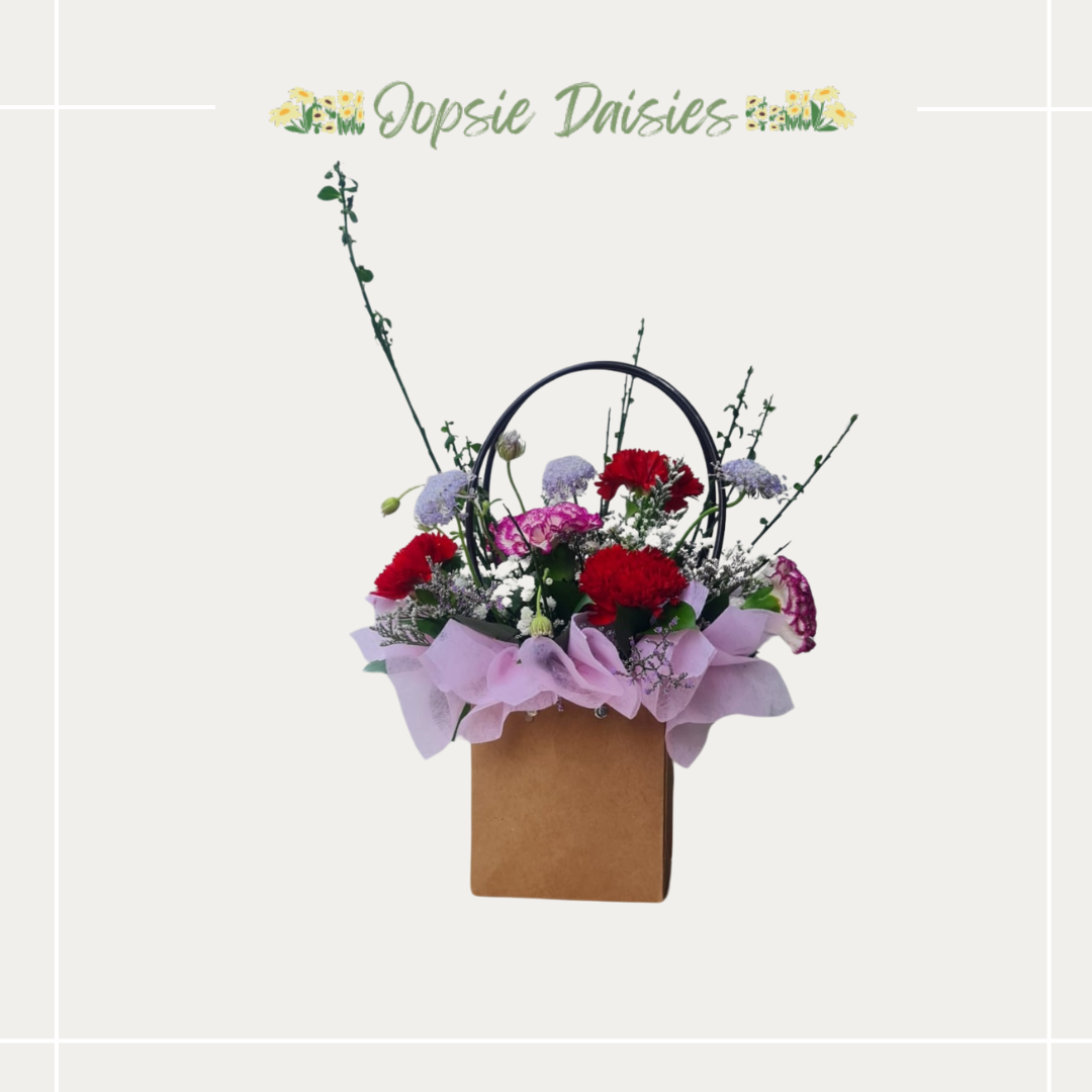 Softly romantic and full of charm, Whispers of Joy captures the gentle beauty of heartfelt affection. This delightful arrangement features vibrant red carnations, symbols of admiration and deep emotion, paired with delicate lavender scabiosa that lend a dreamy, whimsical touch.